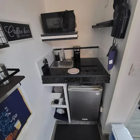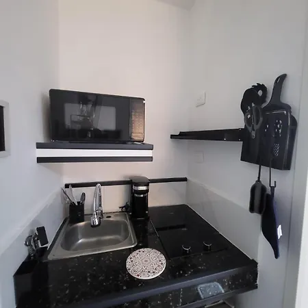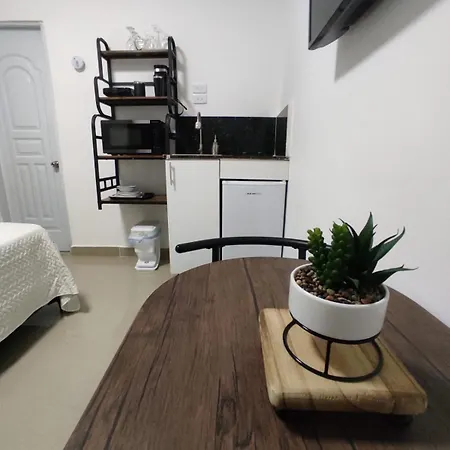 The rooms in La Casita De Gazcue Hostel have a microwave oven, a refrigerator, and kitchenware for guests to cook their food.